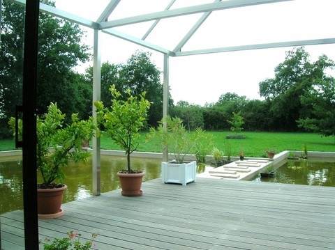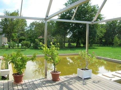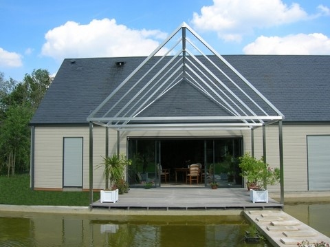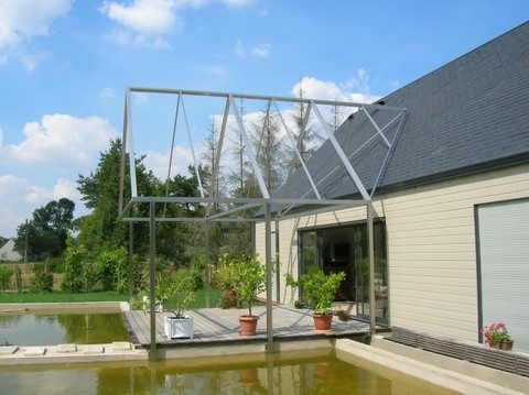 Cette pergola en inox brossé a été réalisée sur mesure dans un style contemporain. En respectant les lignes de la construction existante, l'inox a su trouver sa place dans cet environnement et apporter une touche d'originalité.