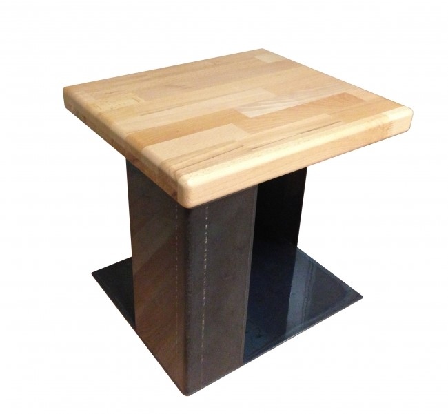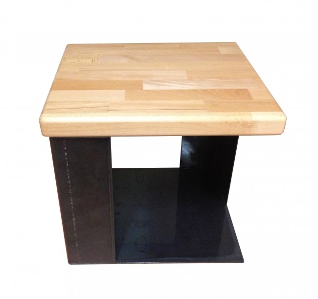 Table basse acier brut et hêtre huilé au design épuré. Réalisable sur mesure.